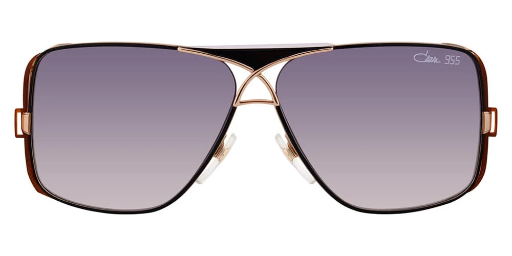 This square Cazal sunglass comes in a black and orange frame with grey gradient lenses.