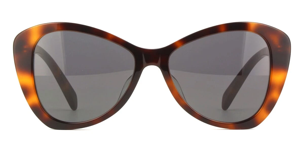This cat eye Celine sunglass comes in a shiny dark havana frame with grey with light mirror lenses.