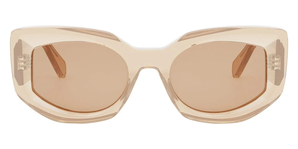 This square Celine sunglass comes in a shiny transparent orange frame with roviex brown lenses.