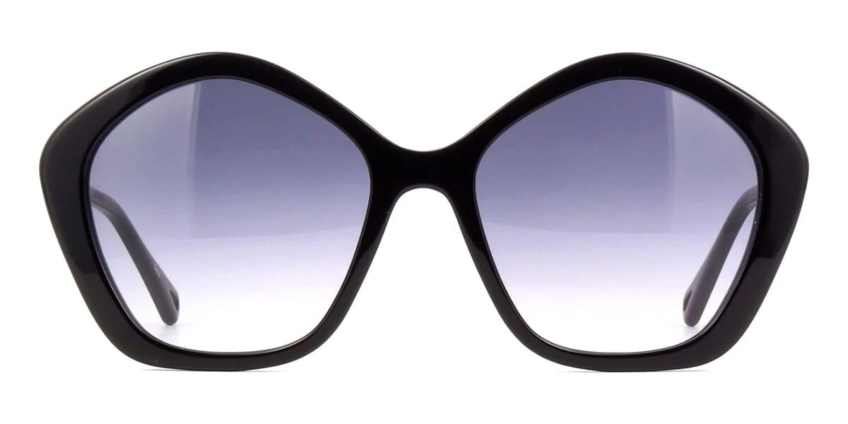 This square Chloe sunglass comes in a shiny black frame with grey gradient lenses.