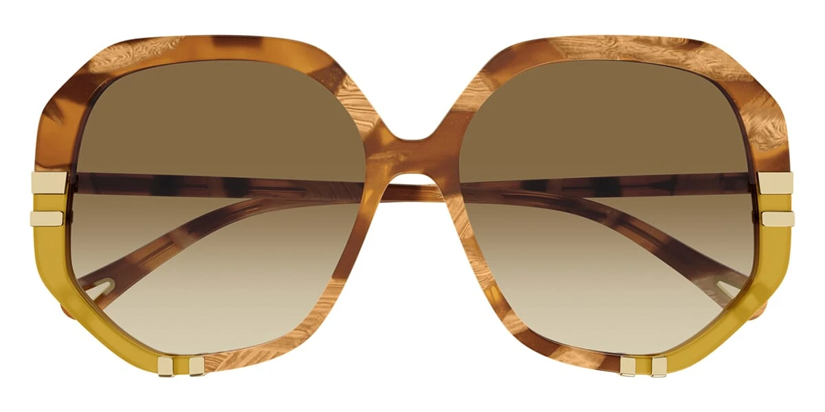 This square Chloe sunglass comes in a marbled havana brown to crystal honey frame with brown lenses.