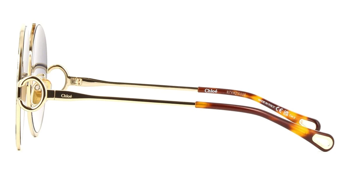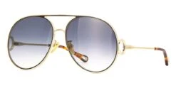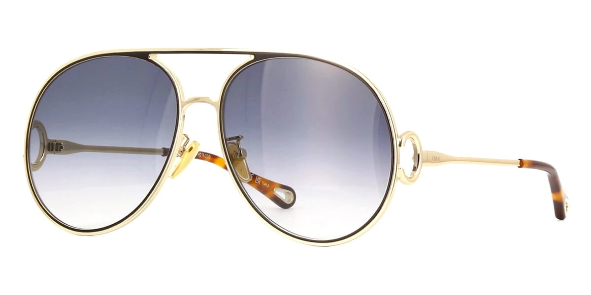 This aviator Chloe sunglass comes in a shimmering gold with tortoise frame with blue gradient with light mirror lenses.