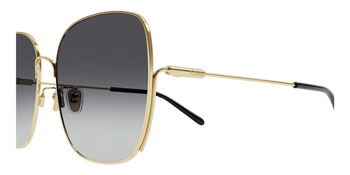 This square Chloe sunglass comes in a gold frame with grey gradient lenses.