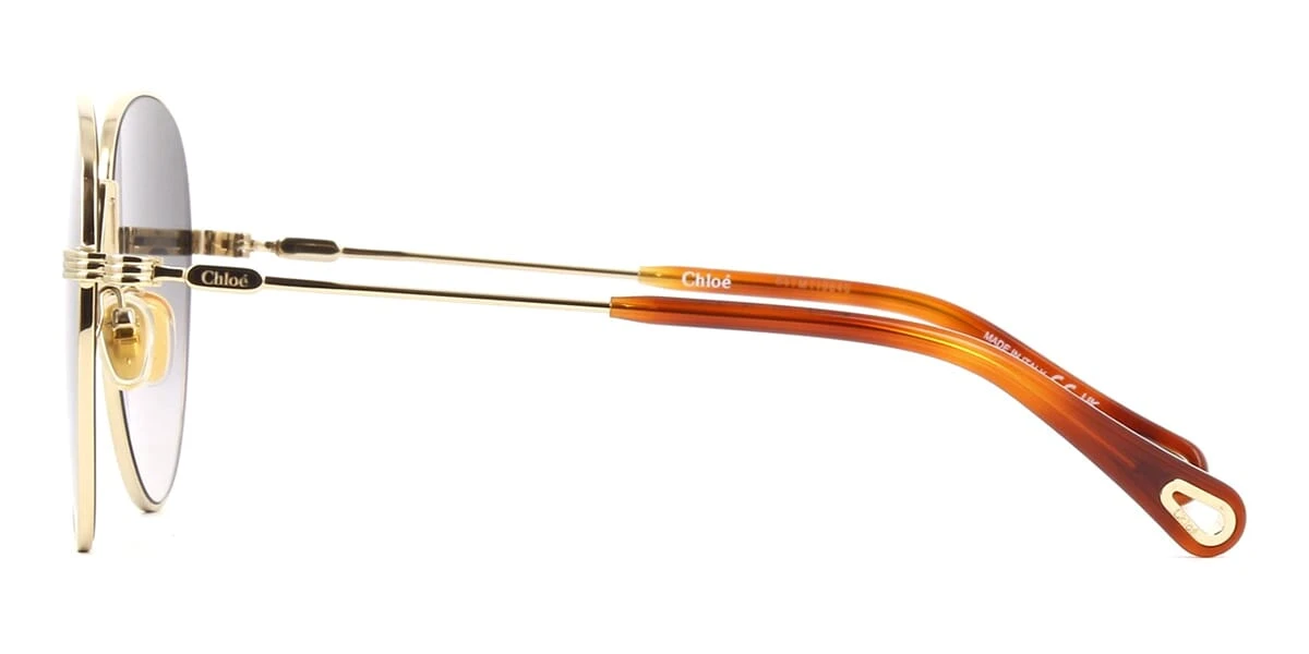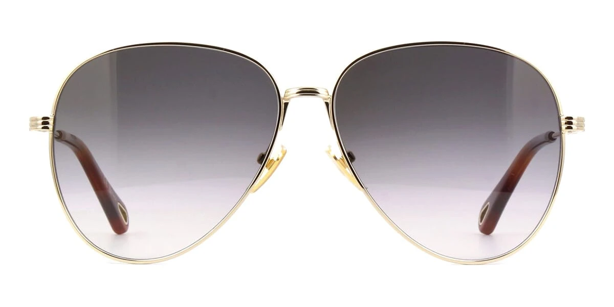 This aviator Chloe sunglass comes in a gold frame with grey gradient lenses.