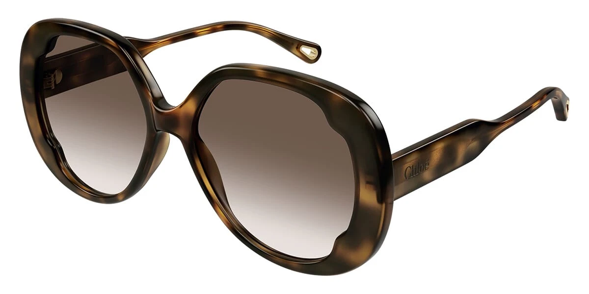 This square Chloe sunglass comes in a brown havana frame with brown gradient lenses.