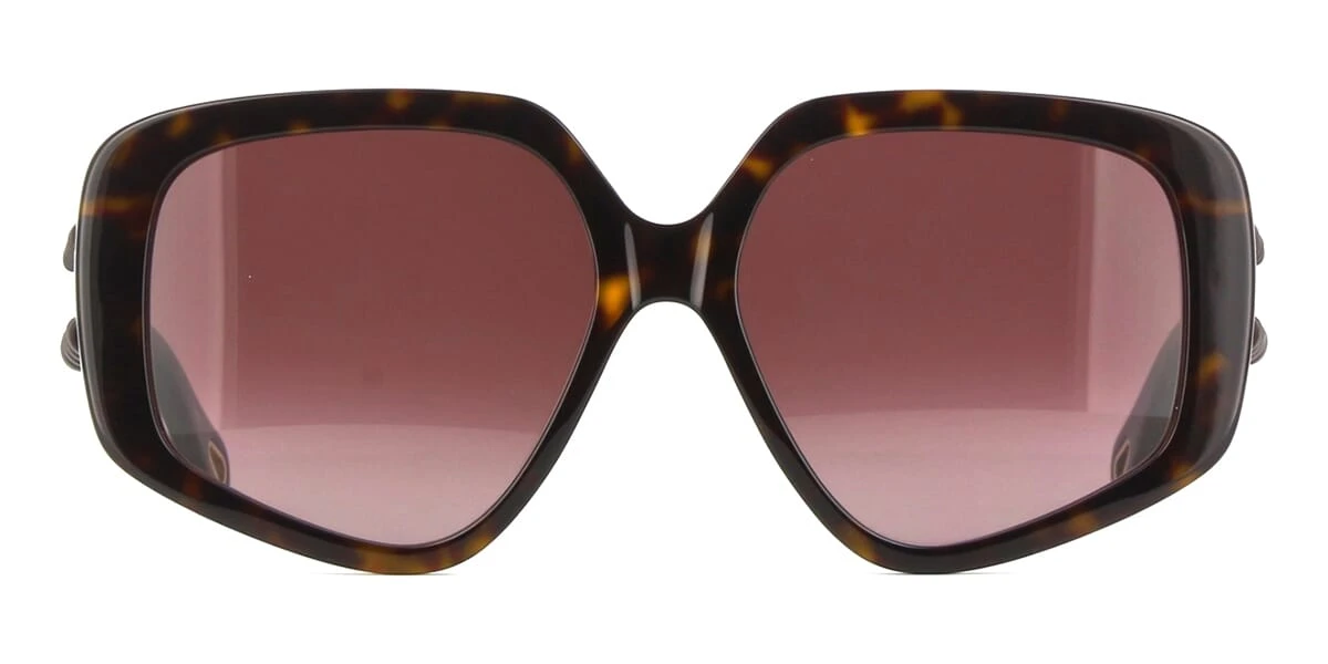 This square Chloe sunglass comes in a shiny dark havana frame with violet gradient with light mirror lenses.