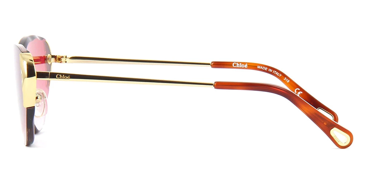 This cat eye Chloe sunglass comes in a gold frame with red gradient lenses.