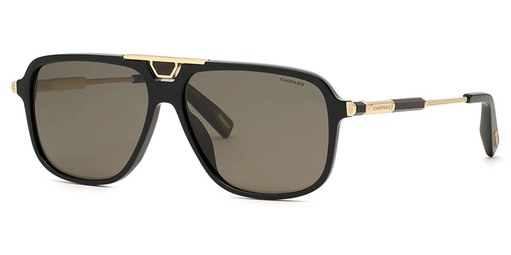 This aviator Chopard sunglass comes in a shiny black frame with light brown polarised lenses.