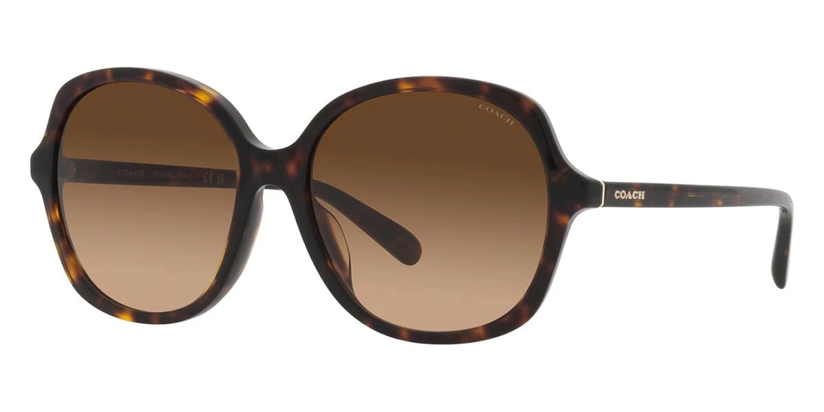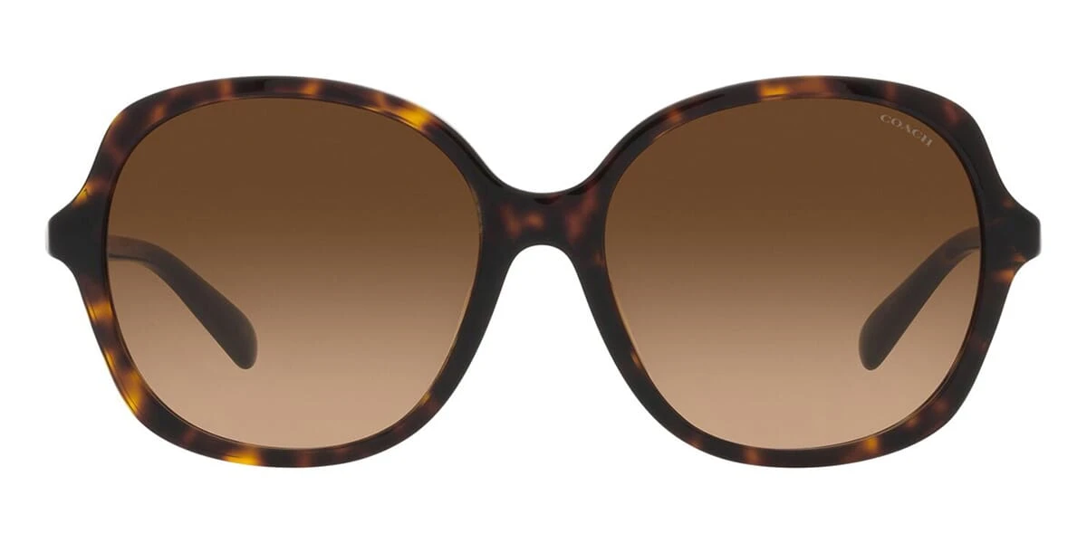 This butterfly Coach sunglass comes in a dark tortoise frame with brown gradient lenses.