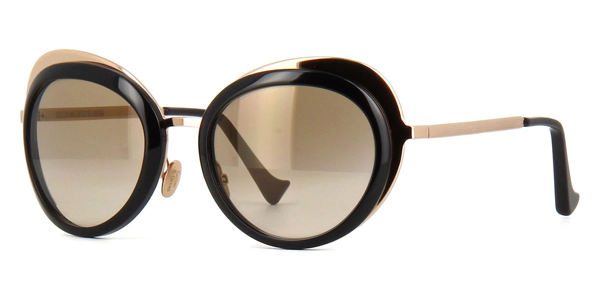 This round Cutler and Gross sunglass comes in a black frame with brown gradient mirror lenses.