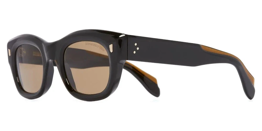 This square Cutler and Gross sunglass comes in a olive on black frame with light brown lenses.