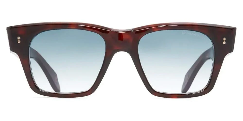 This square Cutler and Gross sunglass comes in a dark turtle frame with light blue gradient lenses.