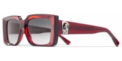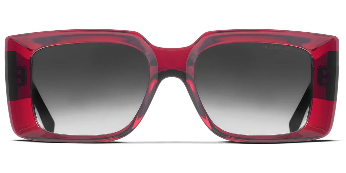 This square Cutler and Gross sunglass comes in a bordeaux with 925 sterling silver reaper frame with grey gradient lenses.