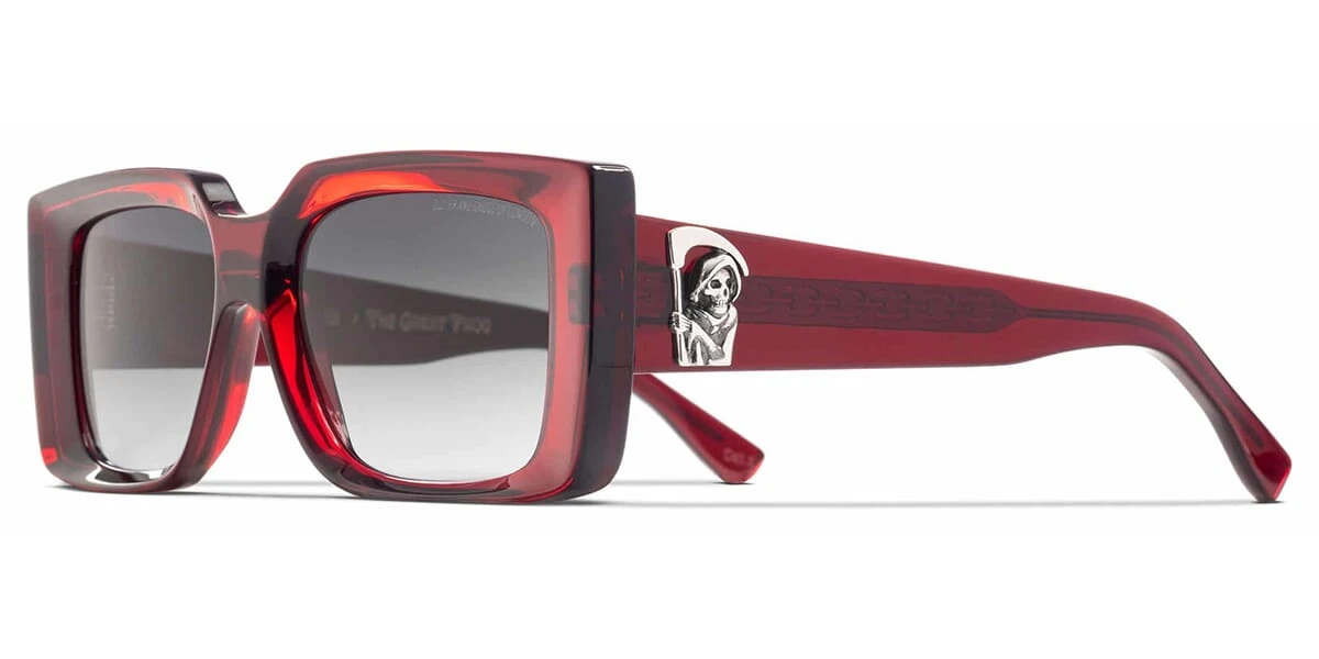 The Reaper perfectly blends the distinctive design language of TGF with Cutler and Gross. The large square sunglasses have weight-saving ‘televisioni’ reverse milling for additional comfort and character. Featuring a namesake Reaper emblem detail which is hand cast in solid British 925 Sterling Silver.