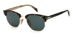 This square David Beckham sunglass comes in a dark havana and gold frame with green lenses.