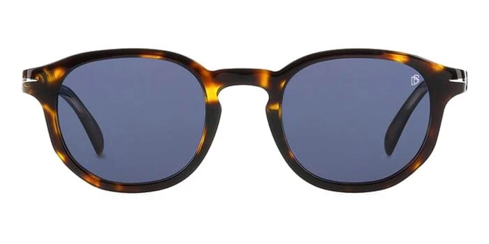 This round David Beckham sunglass comes in a dark havana frame with blue lenses.