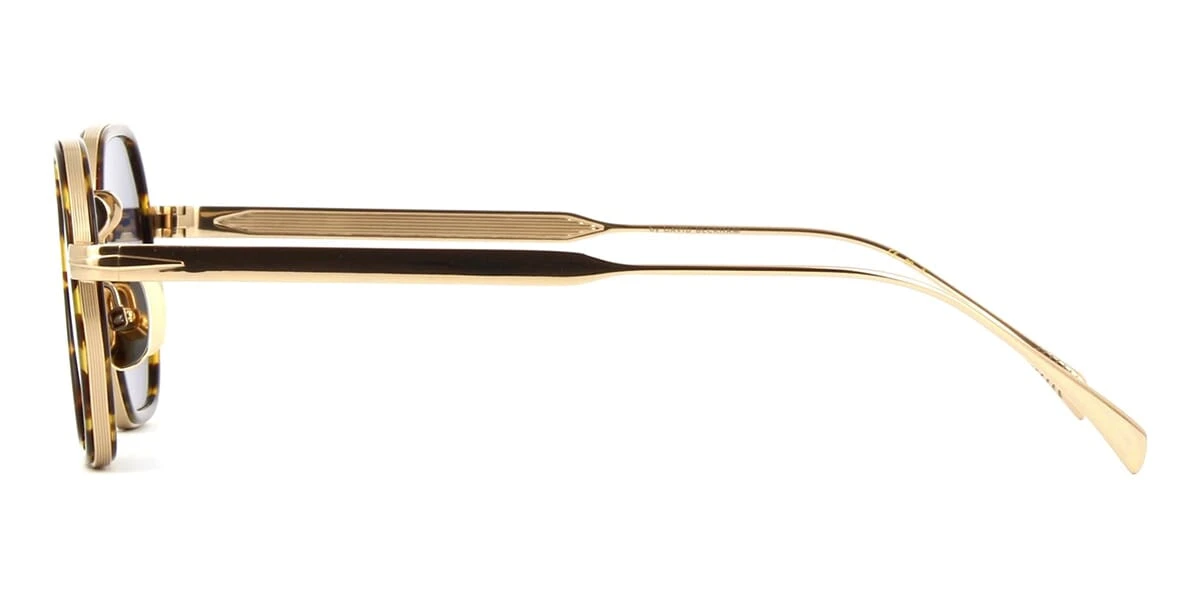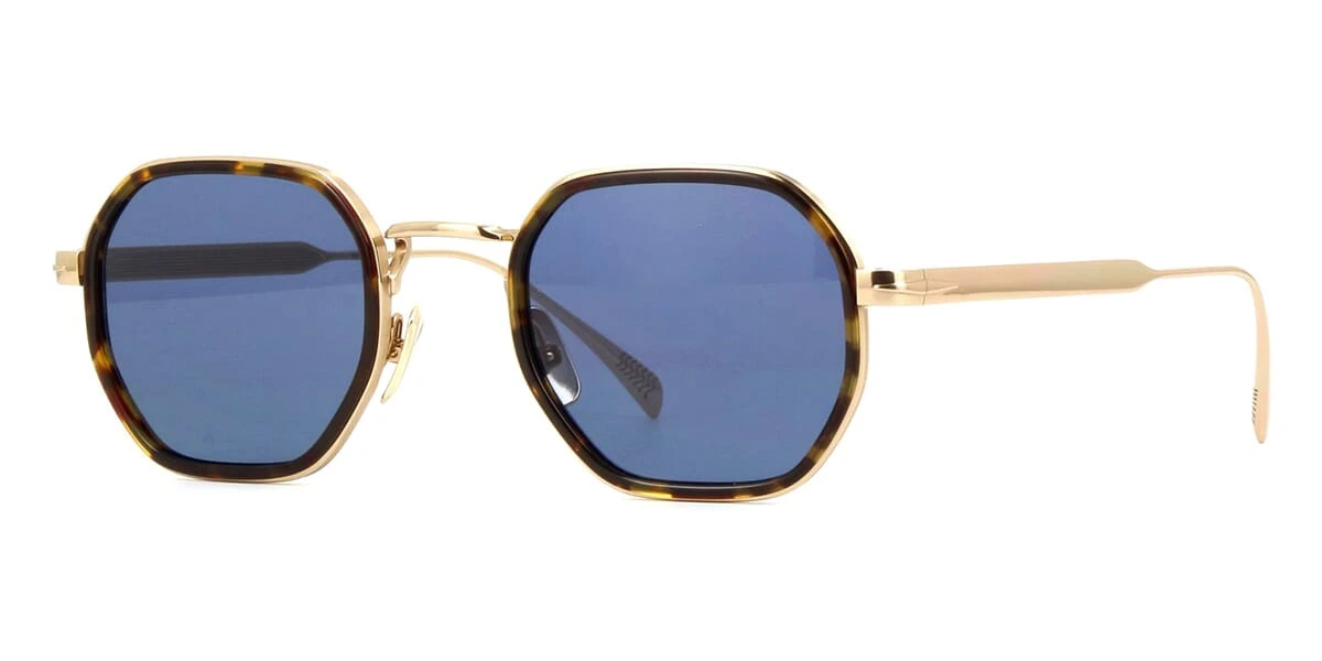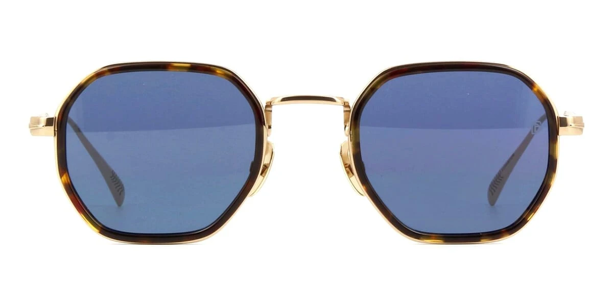 This square David Beckham sunglass comes in a havana and gold frame with blue lenses.