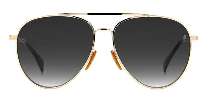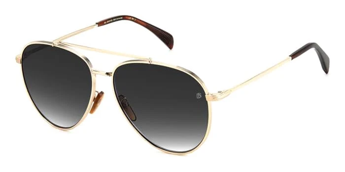 This aviator David Beckham sunglass comes in a gold and brown frame with dark grey gradient lenses.
