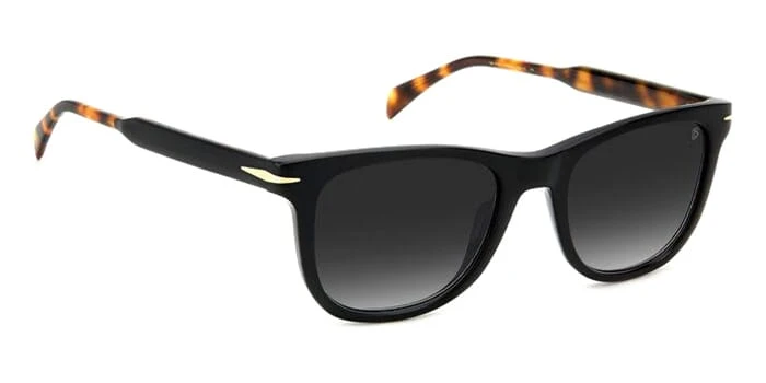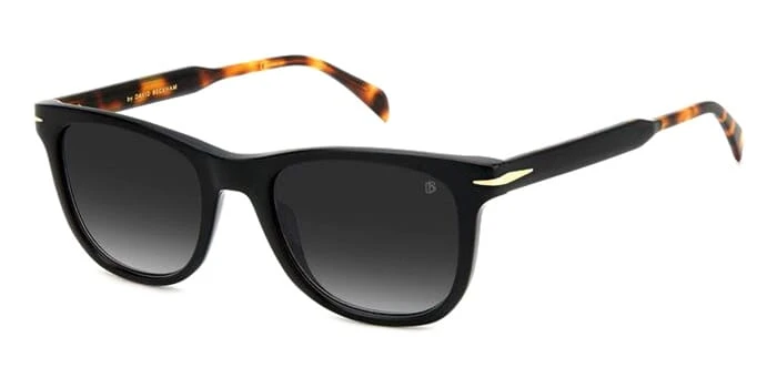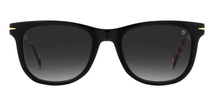 This square David Beckham sunglass comes in a black with havana frame with dark grey gradient lenses.