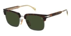 This square David Beckham sunglass comes in a havana with ruthenium silver frame with green lenses.