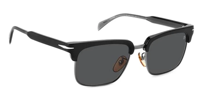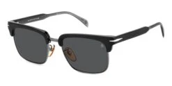 This square David Beckham sunglass comes in a black with dark ruthenium grey frame with dark grey polarised lenses.