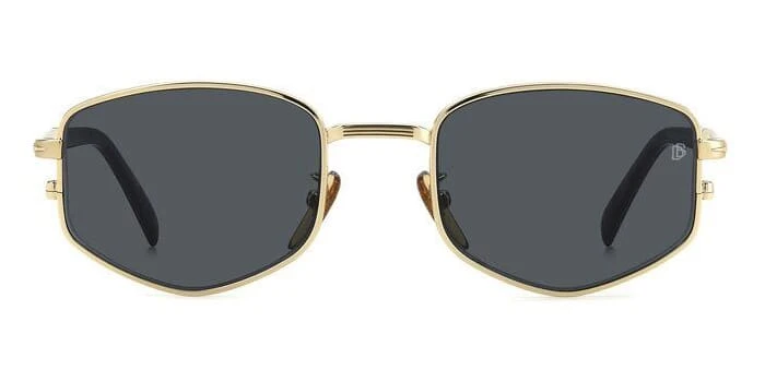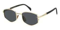 This square David Beckham sunglass comes in a gold with black frame with grey lenses.