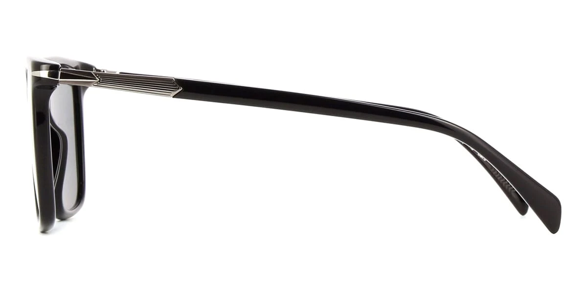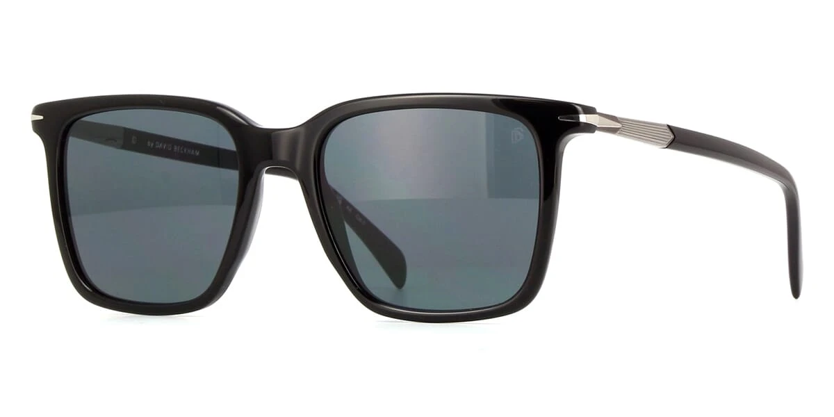 This square David Beckham sunglass comes in a shiny black with dark ruthenium frame with dark blue lenses.