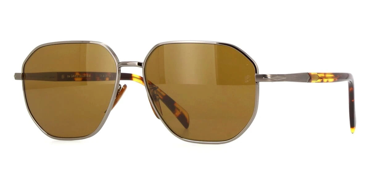 This square David Beckham sunglass comes in a dark ruthenium with dark havana frame with brown with light mirror lenses.