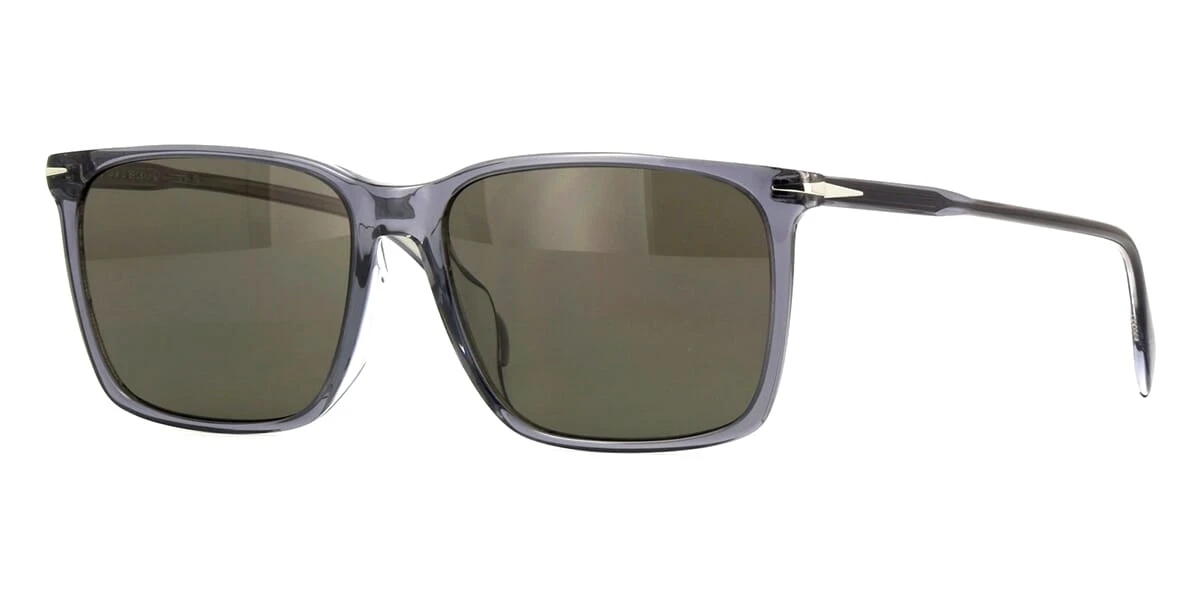 This square David Beckham sunglass comes in a grey crystal frame with grey with light mirror lenses.