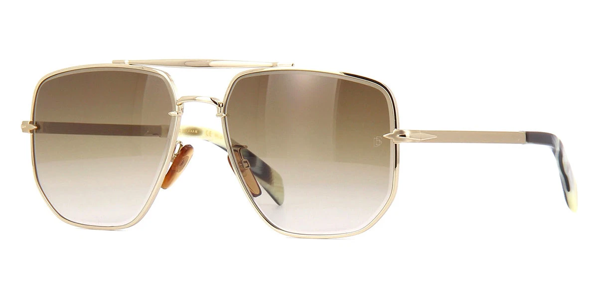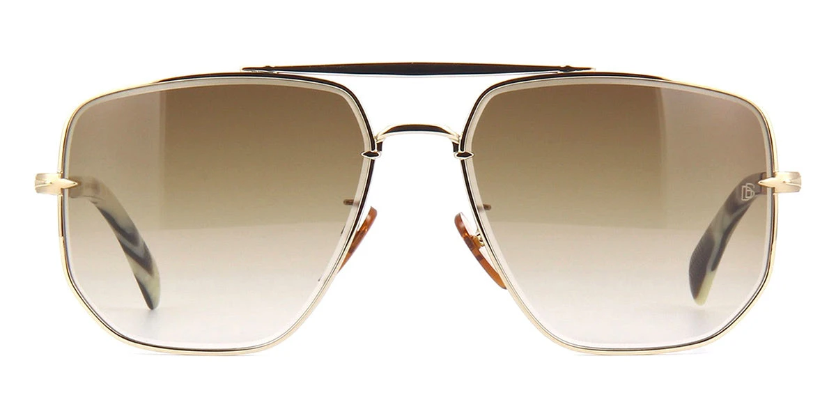 This square David Beckham sunglass comes in a gold frame with brown gradient lenses.