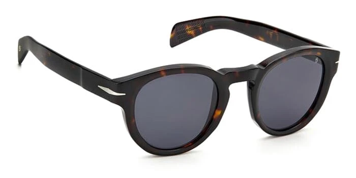 This round David Beckham sunglass comes in a dark havana frame with grey lenses.