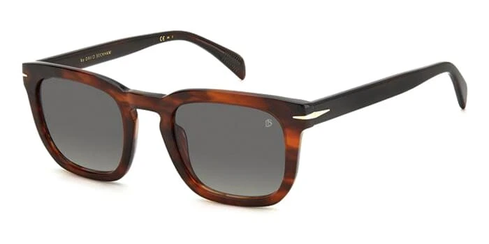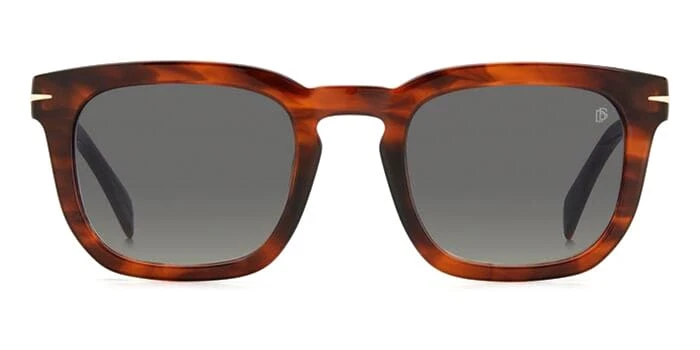 This square David Beckham sunglass comes in a brown horn frame with grey gradient lenses.