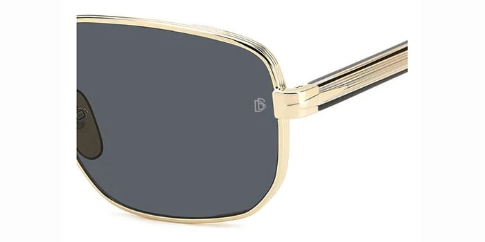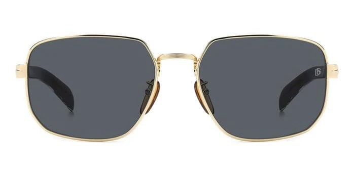 This square David Beckham sunglass comes in a gold with black frame with grey lenses.