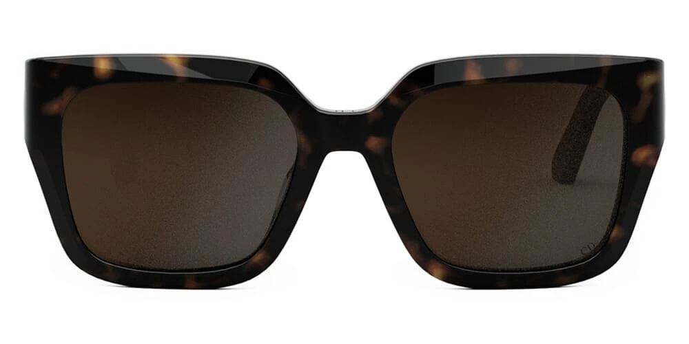 This square Dior sunglass comes in a shiny havana frame with brown lenses.