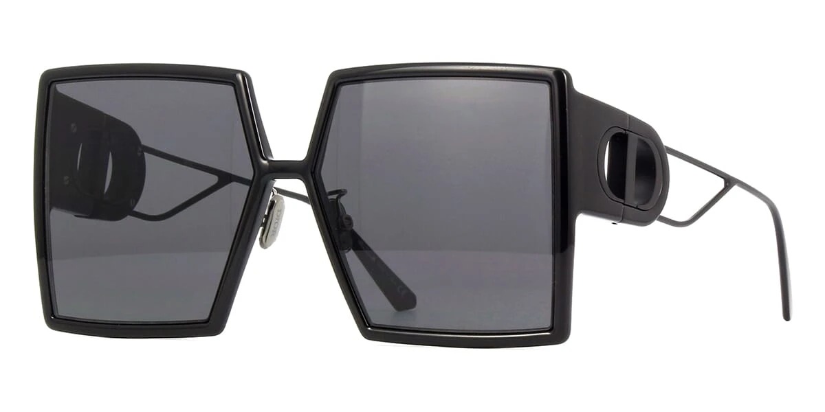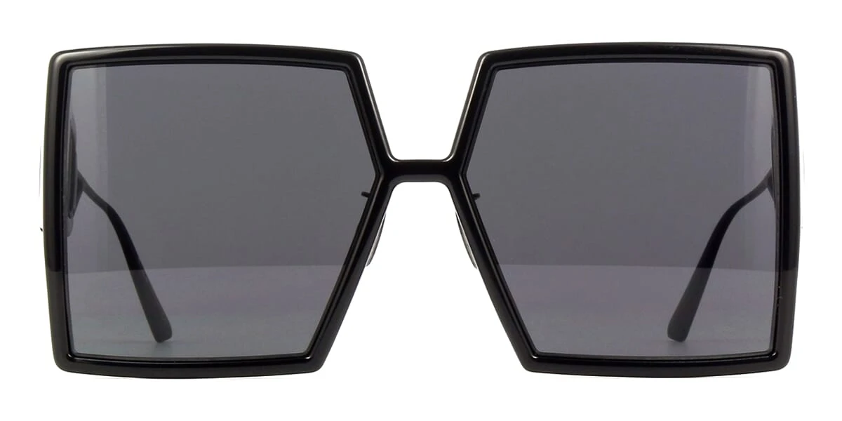 This square Dior sunglass comes in a black frame with dark grey lenses.