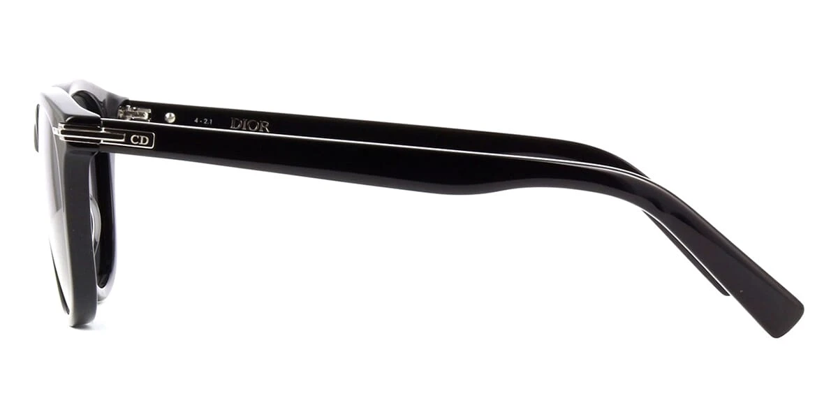 This wayfarer Dior sunglass comes in a black frame with dark grey lenses.