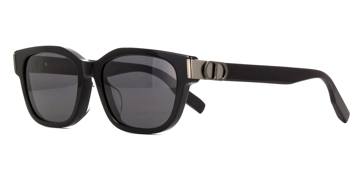This square Dior sunglass comes in a shiny black frame with grey with light mirror lenses.
