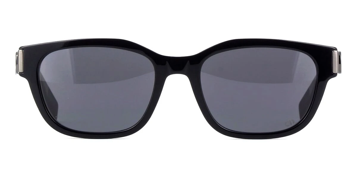 This square Dior sunglass comes in a shiny black frame with grey with light mirror lenses.