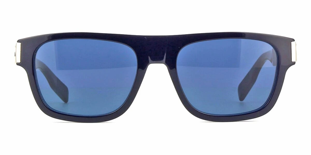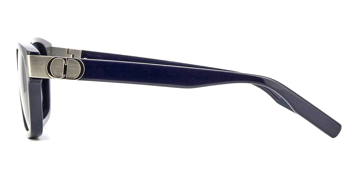 This square Dior sunglass comes in a shiny dark blue frame with dark blue with light mirror lenses.