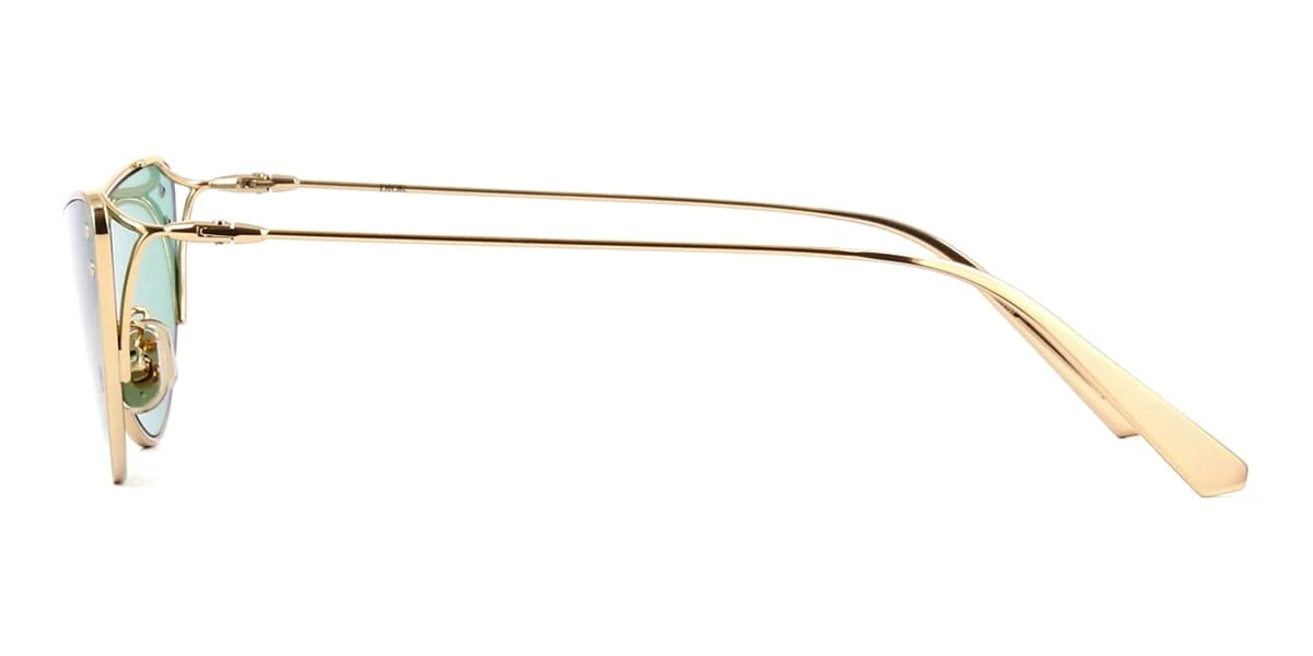 This cat eye Dior sunglass comes in a shiny gold frame with green lenses.