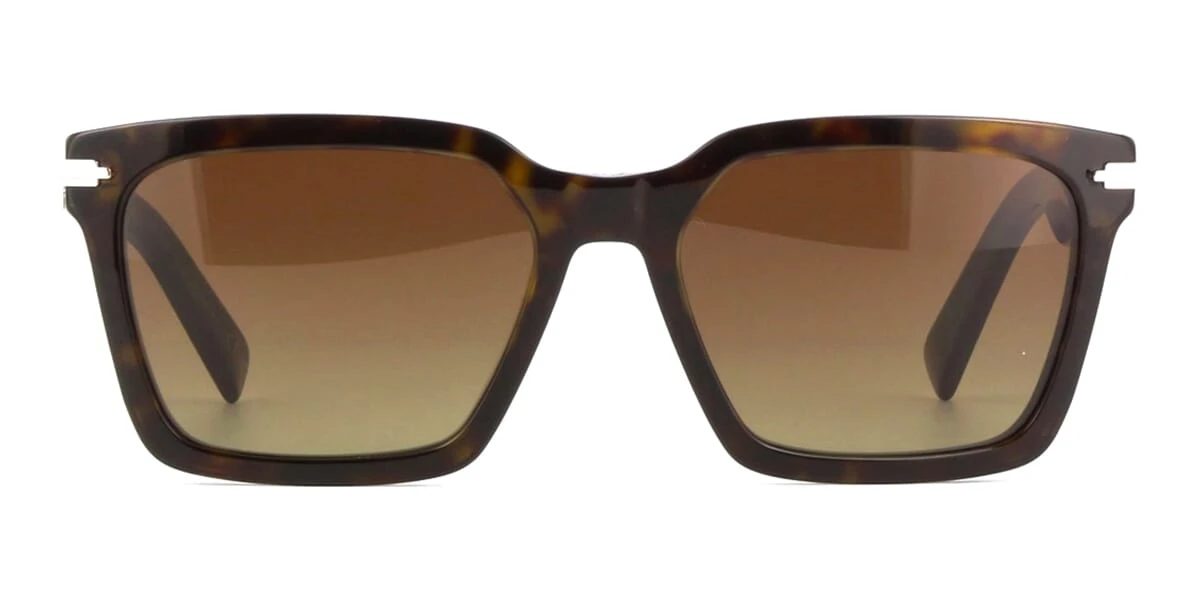 This square Dior sunglass comes in a shiny dark havana frame with brown gradient with light mirror lenses.