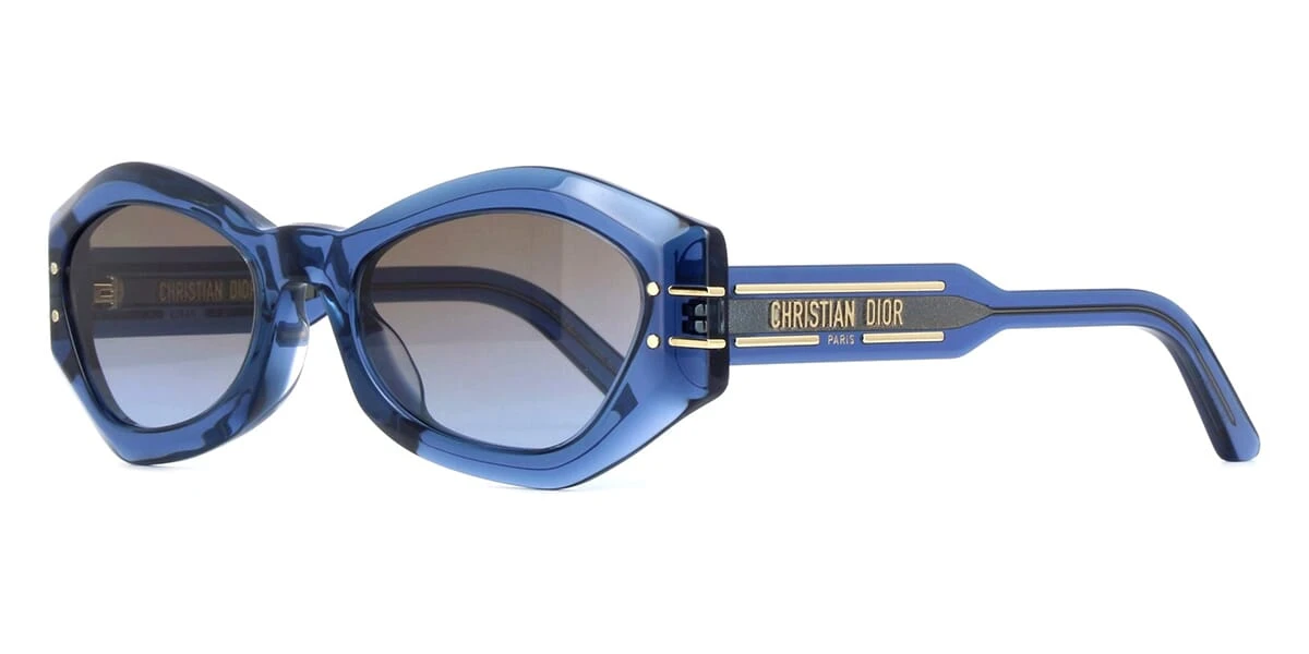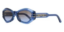 This butterfly Dior sunglass comes in a shiny blue crystal frame with brown gradient with light mirror lenses.