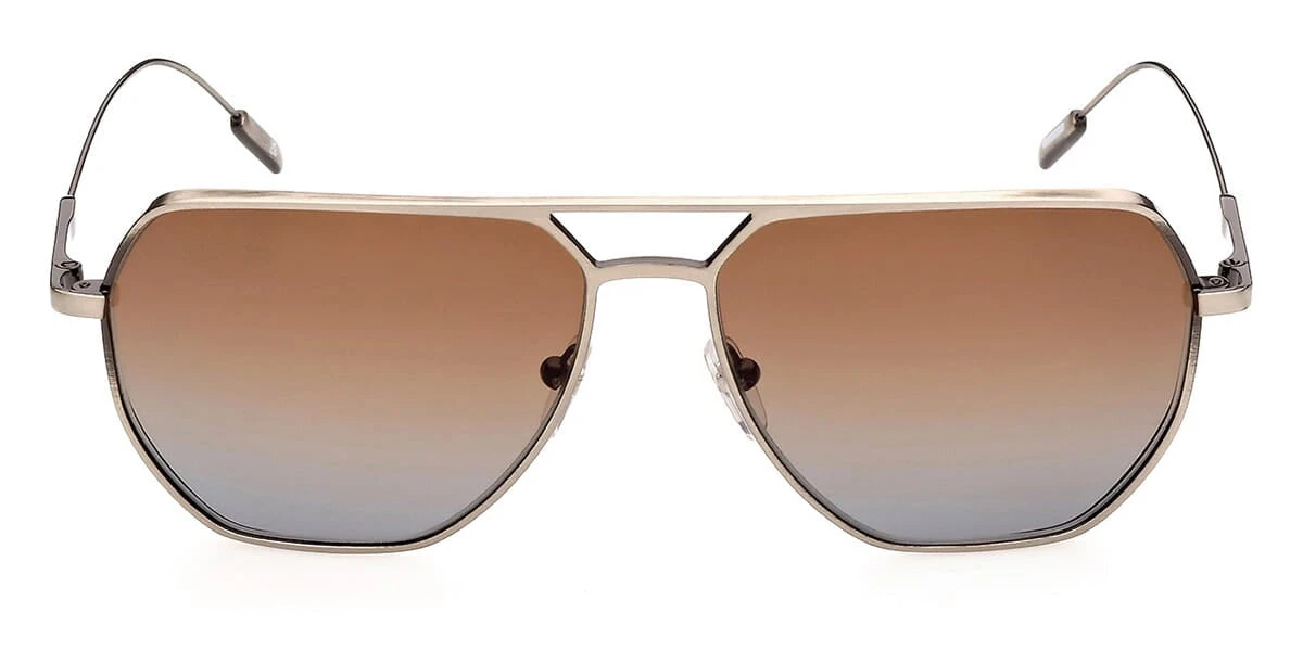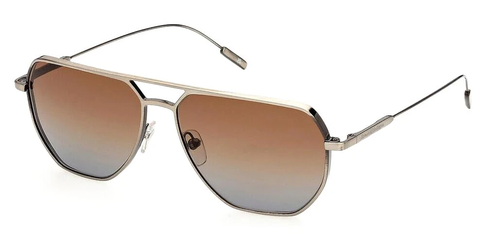This square Ermenegildo Zegna sunglass comes in a matte gunmetal frame with brown gradient lenses.