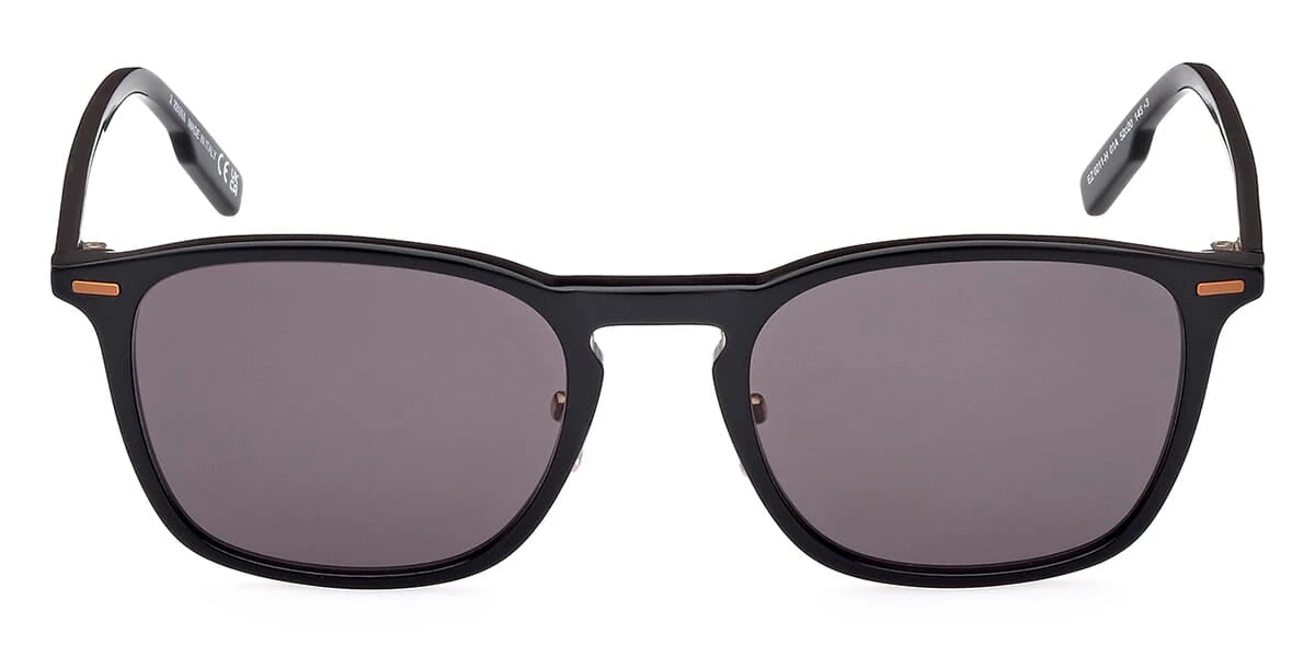 This square Ermenegildo Zegna sunglass comes in a shiny black frame with smoke lenses.
