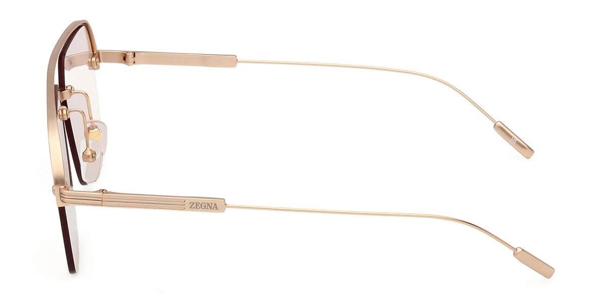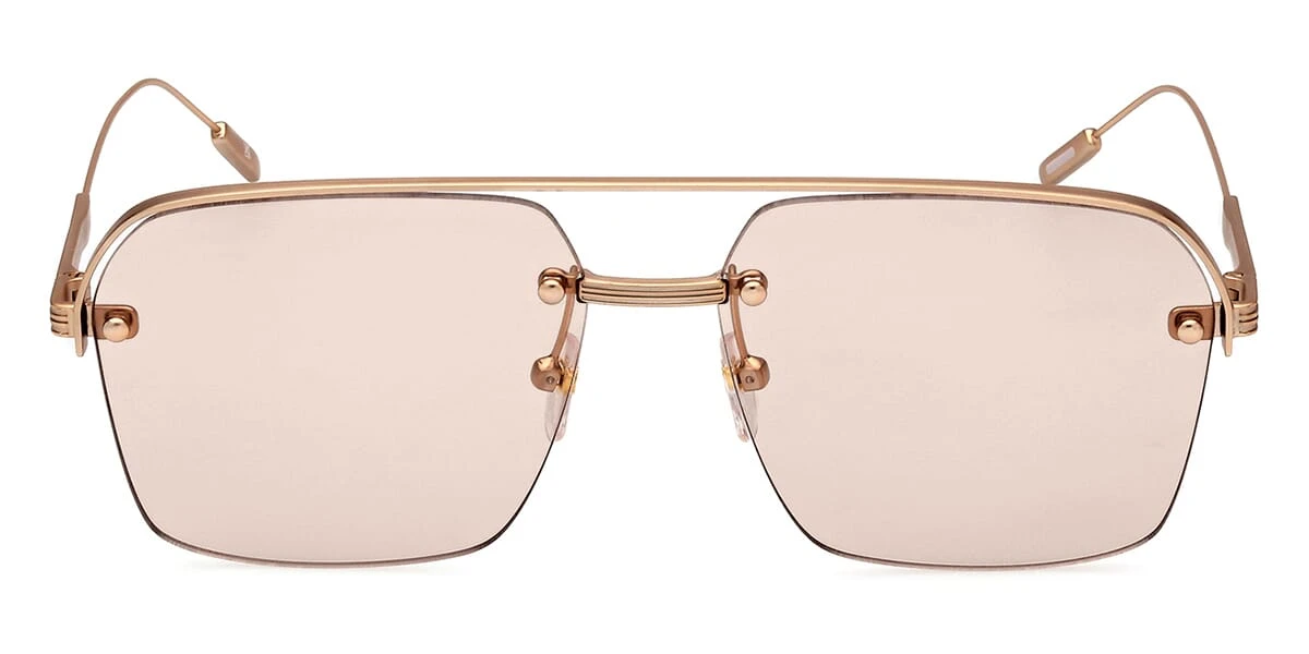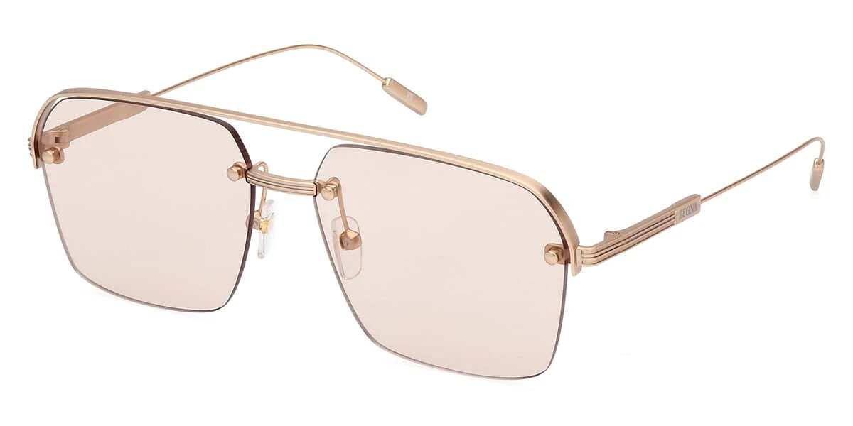 This square Ermenegildo Zegna sunglass comes in a matte rose gold frame with brown lenses.