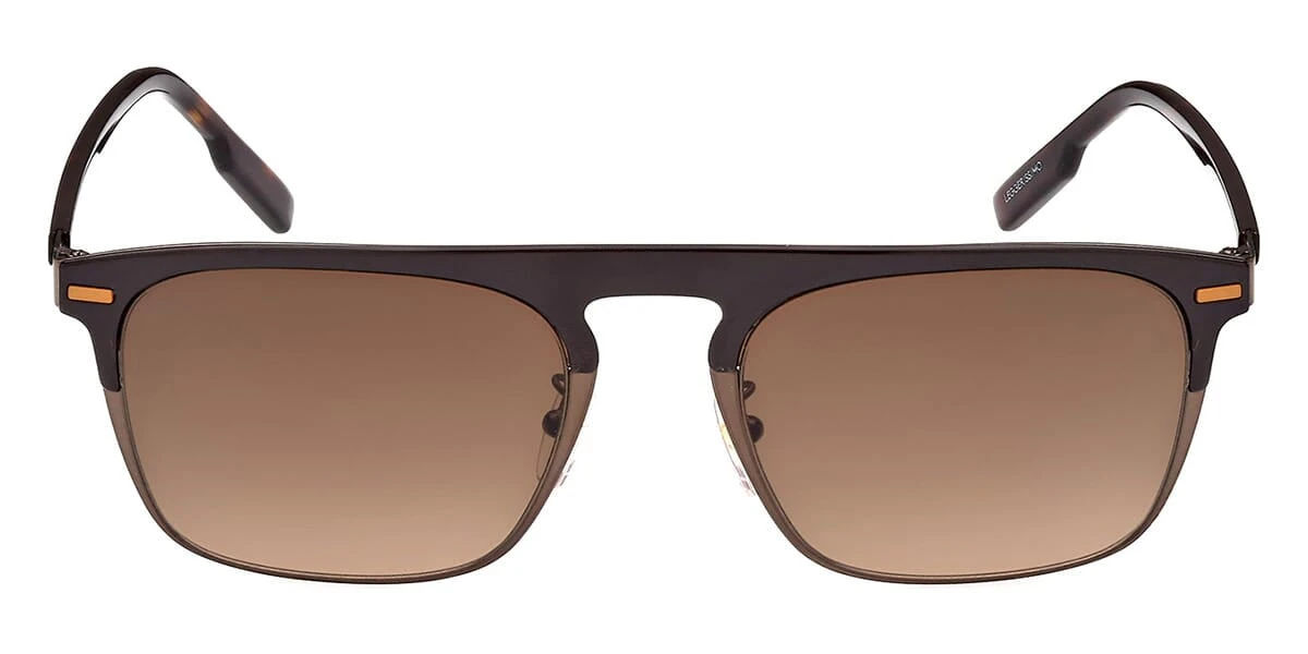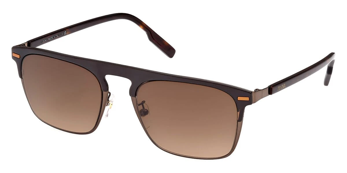 This square Ermenegildo Zegna sunglass comes in a shiny dark brown frame with brown gradient lenses.