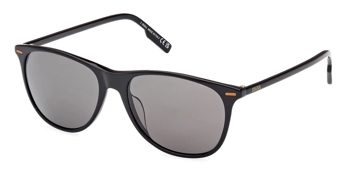 This square Zegna optical comes in a shiny black frame with dark grey lenses.