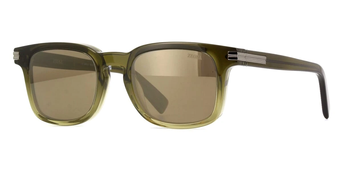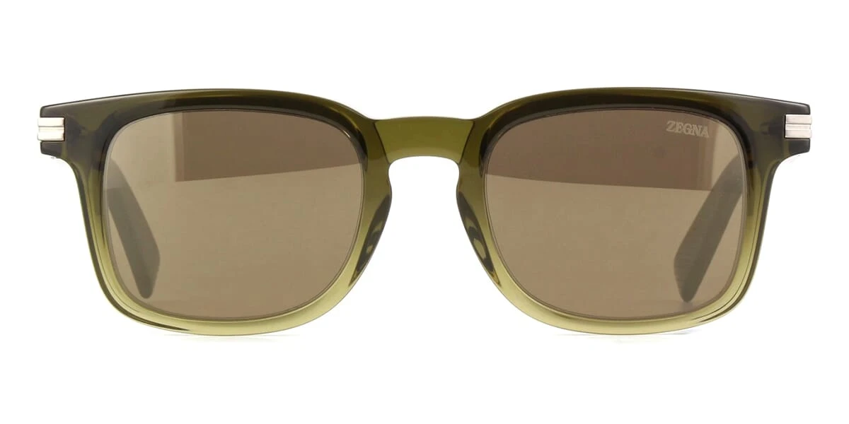 This square Ermenegildo Zegna sunglass comes in a dark green crystal frame with brown with roviex mirror lenses.