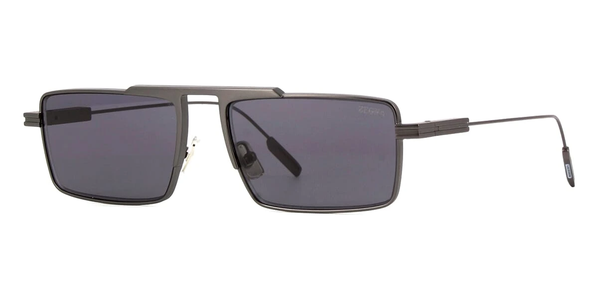 This rectangular Ermenegildo Zegna sunglass comes in a matte gunmetal frame with grey smoke with light mirror lenses.