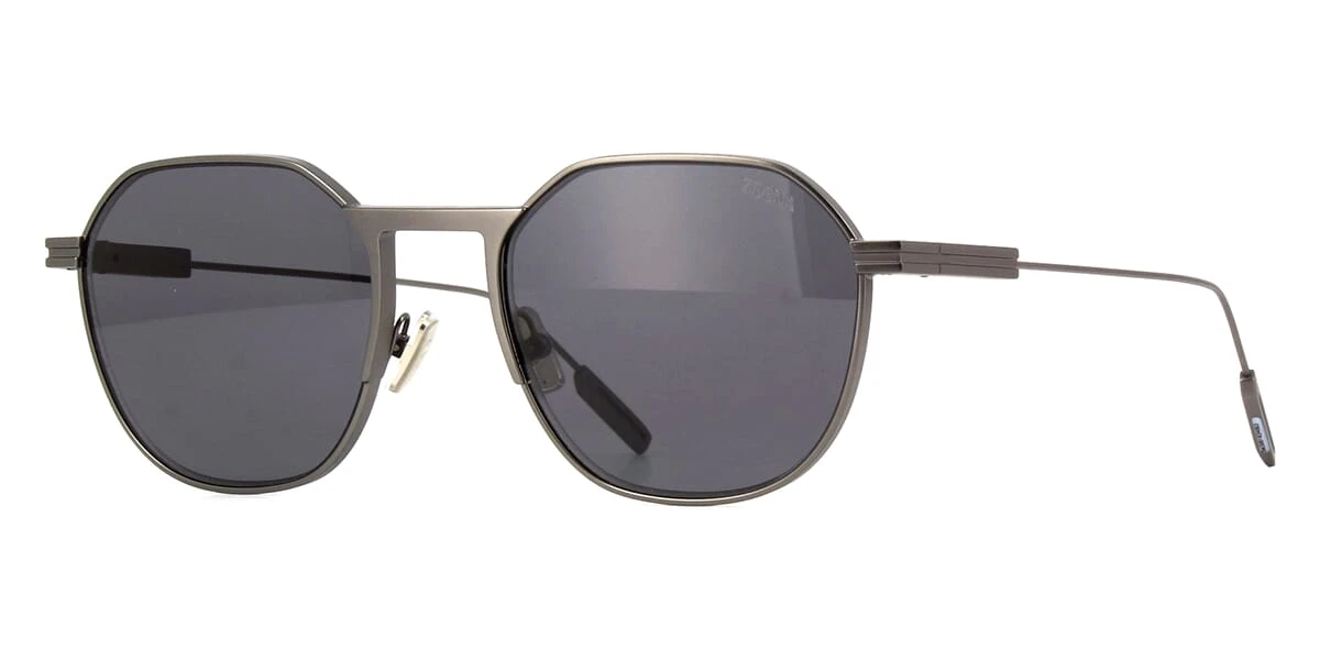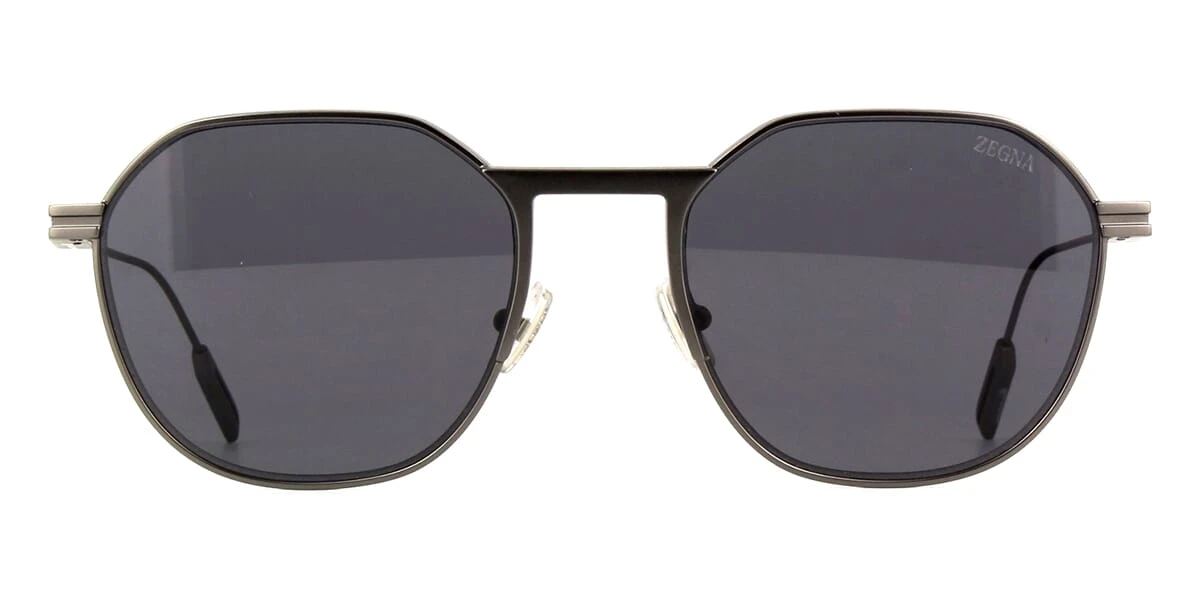 This square Zegna sunglass comes in a matte gunmetal frame with grey smoke with light mirror lenses.
